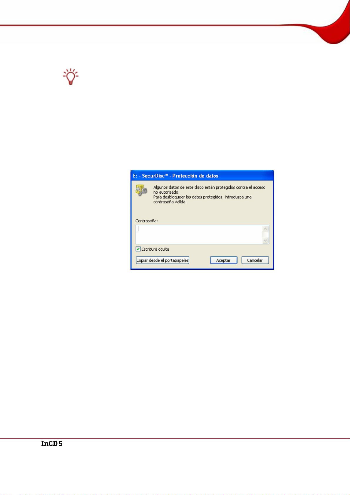contraseña se pueden leer con InCD si hay una unidad SecurDisc™ conectada y se conoce
