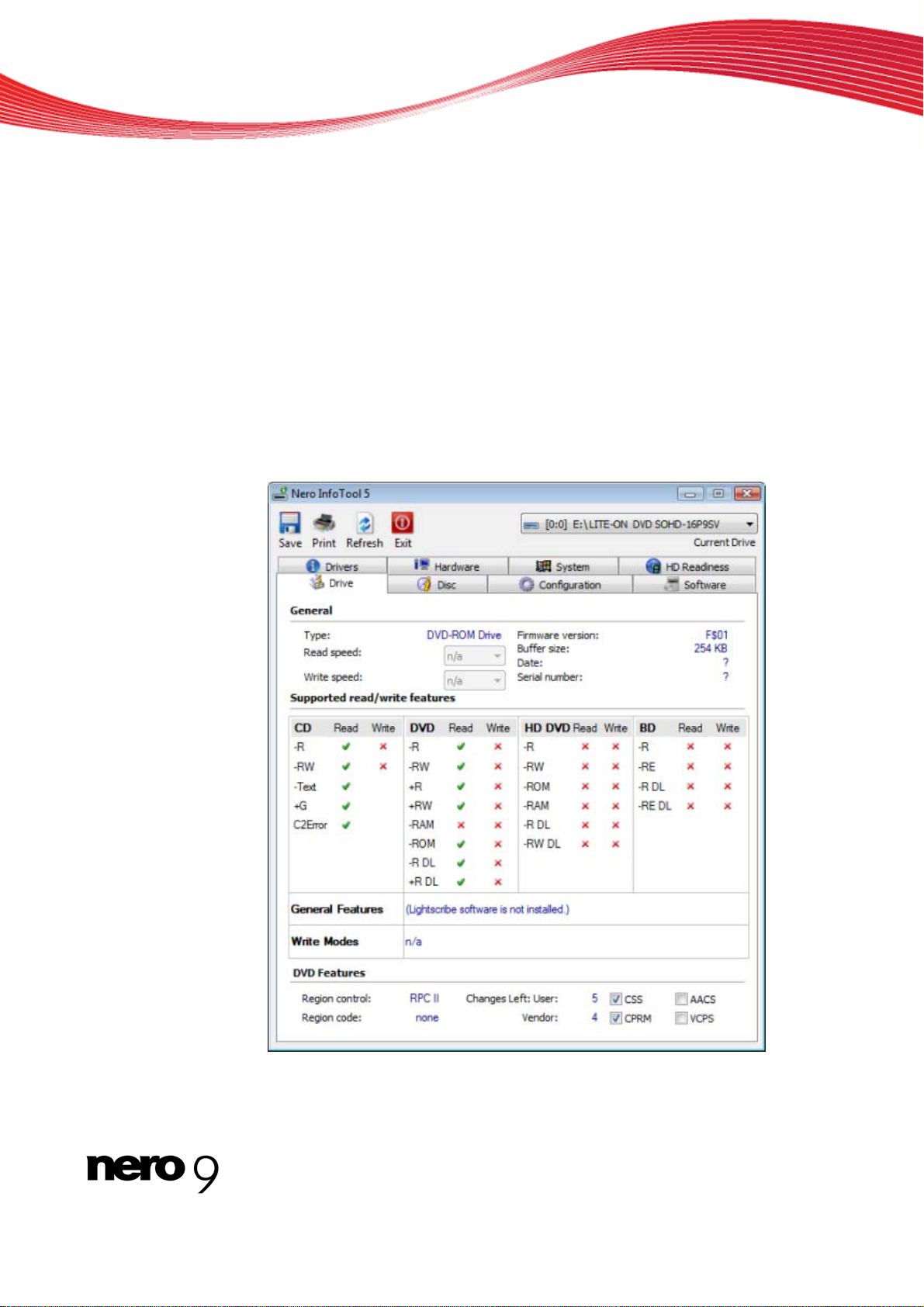 the current DVD region code. Furthermore, Nero InfoTool tells you the name and version