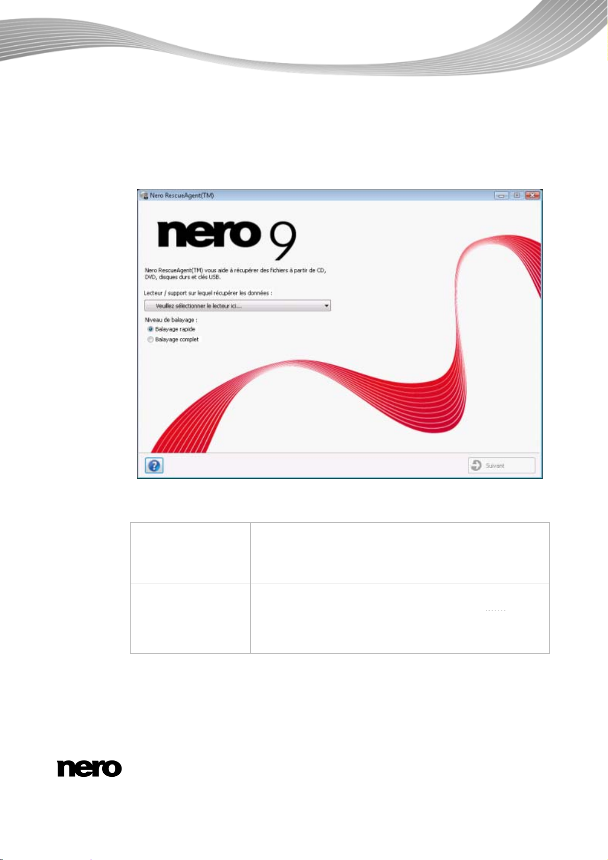 de stockage, restaurer des fichiers ou quitter Nero RescueAgent.