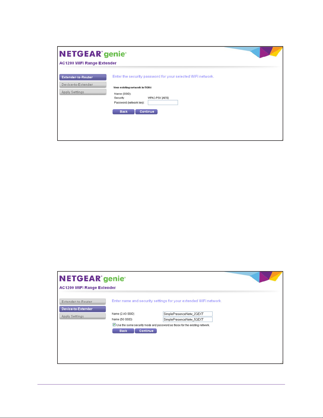 you use to log in to the extender.