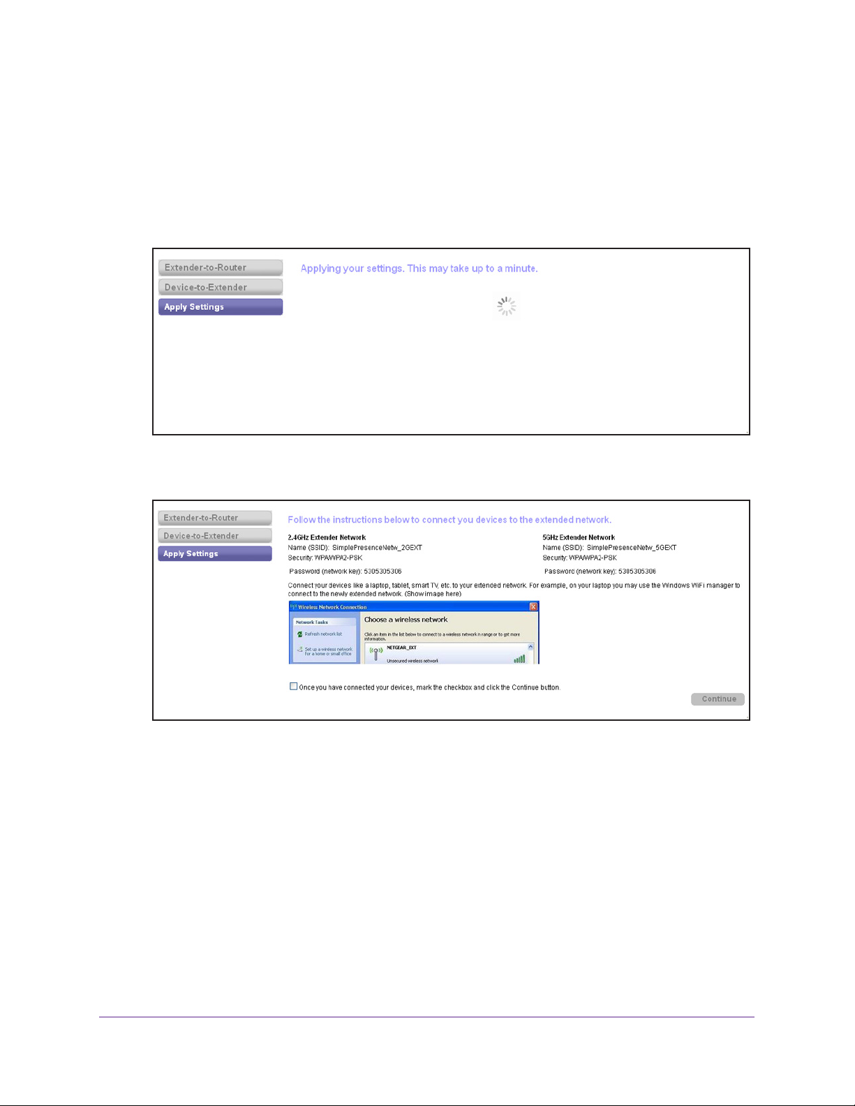 connection between the extender and the WiFi network.