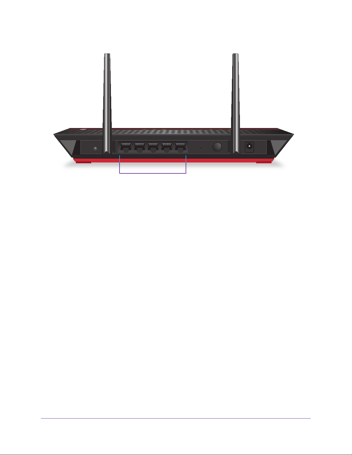 The following figure shows the ports, buttons, antennas, and connector on the rear panel of