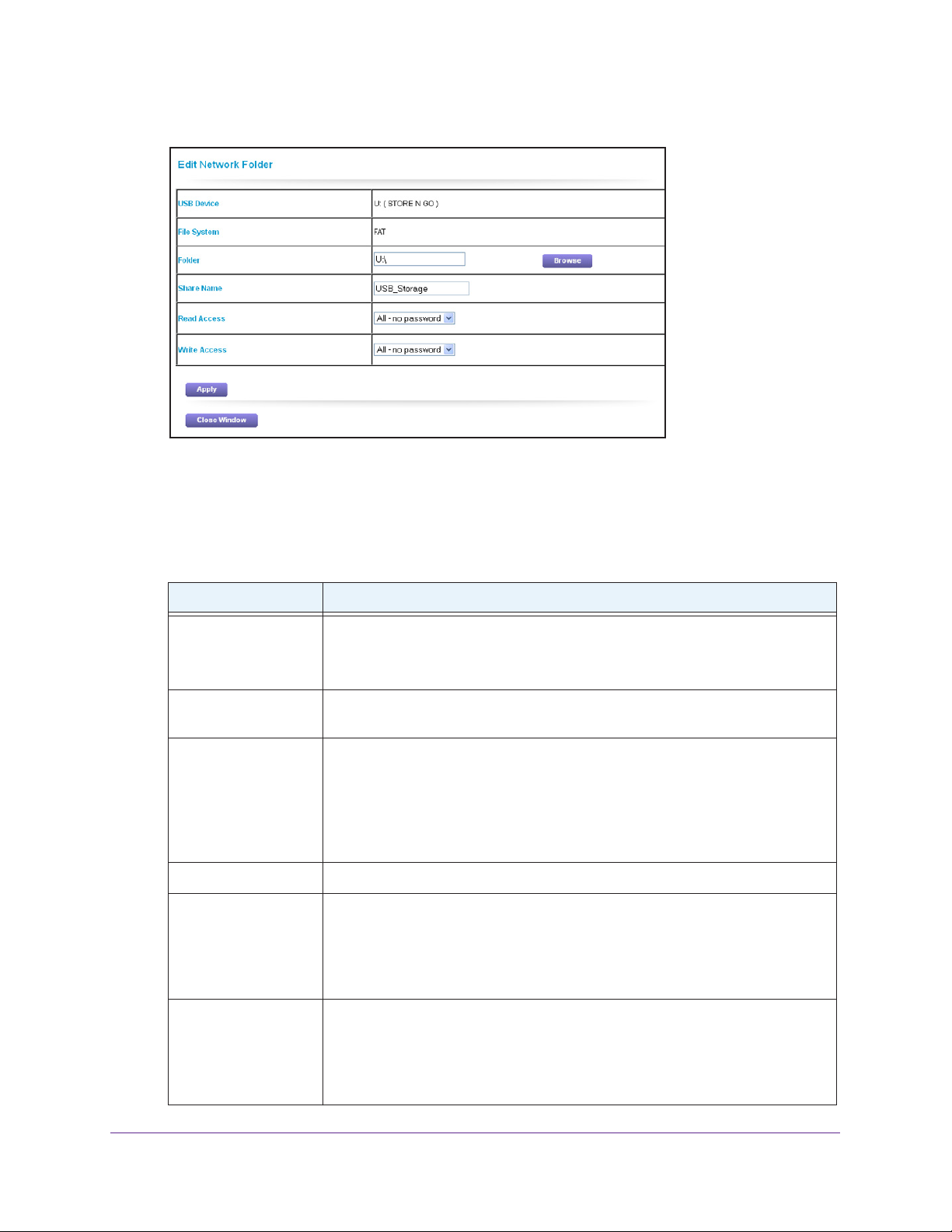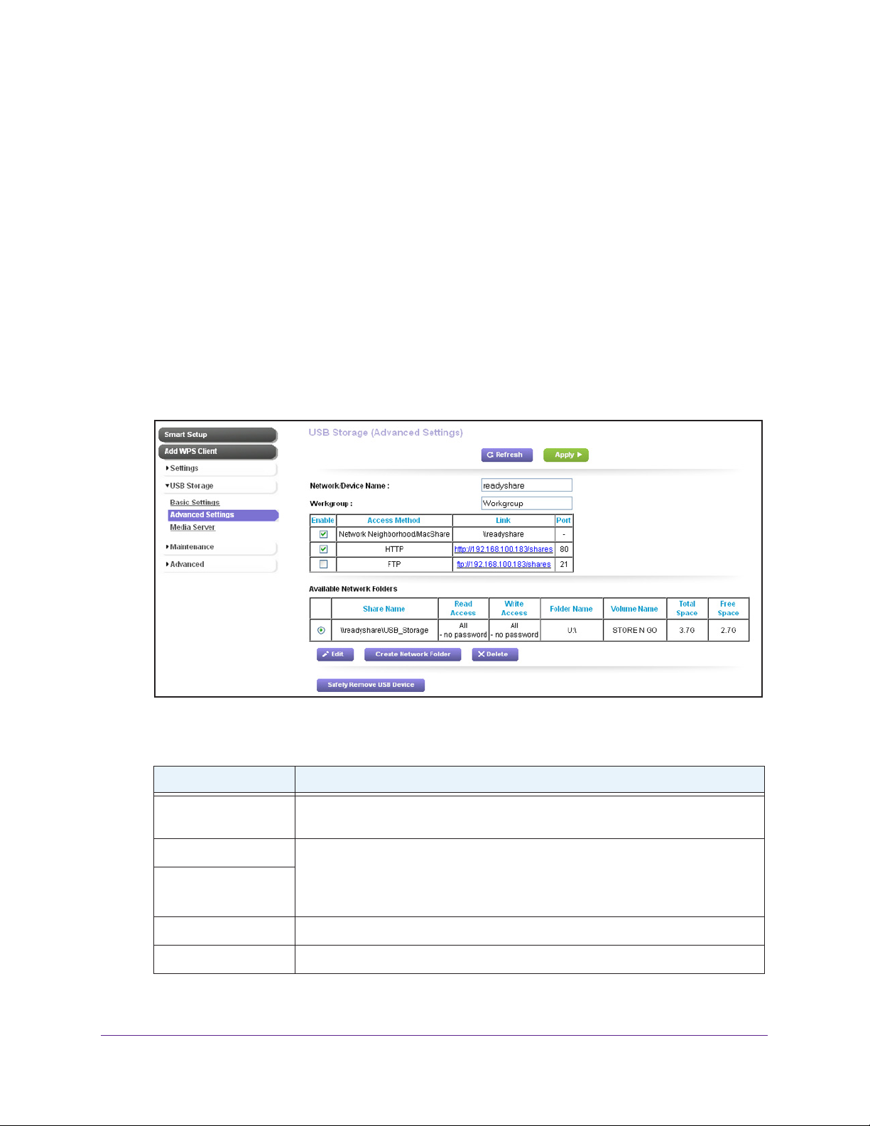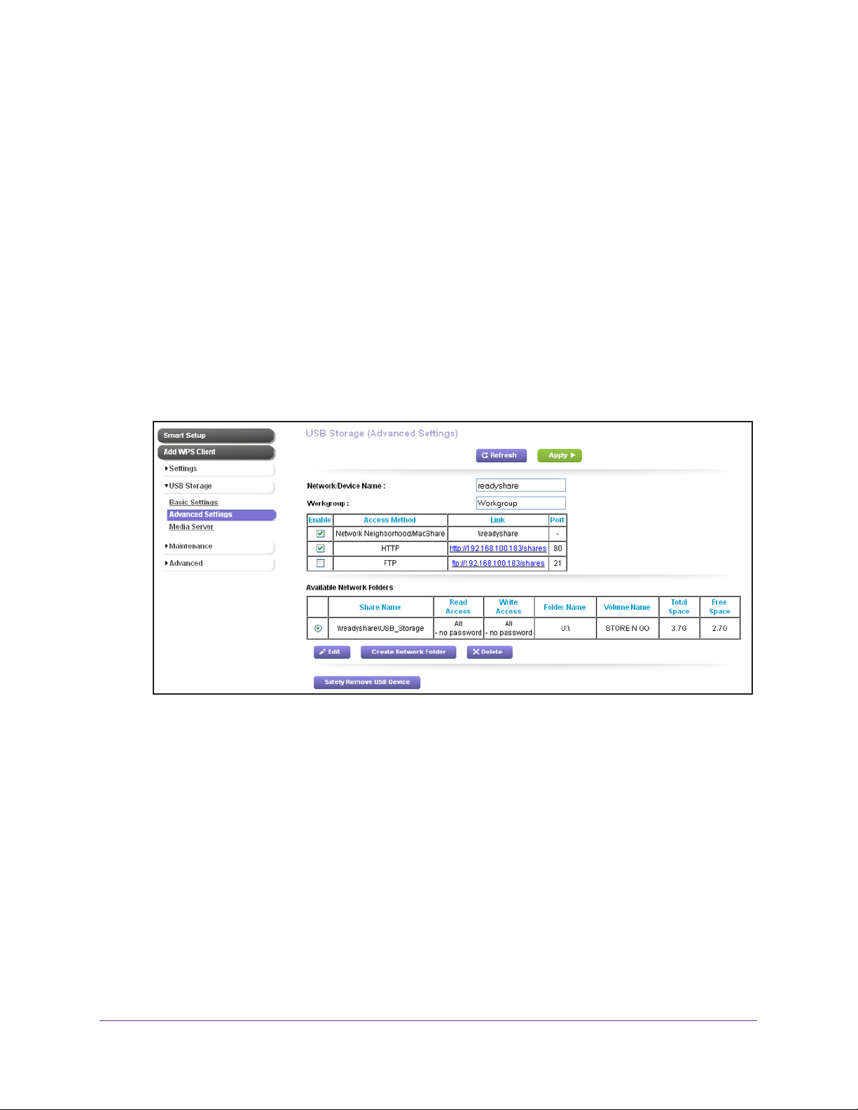 Share NameThe default share name is USB_Storage. If Not Shared is displayed, the default
