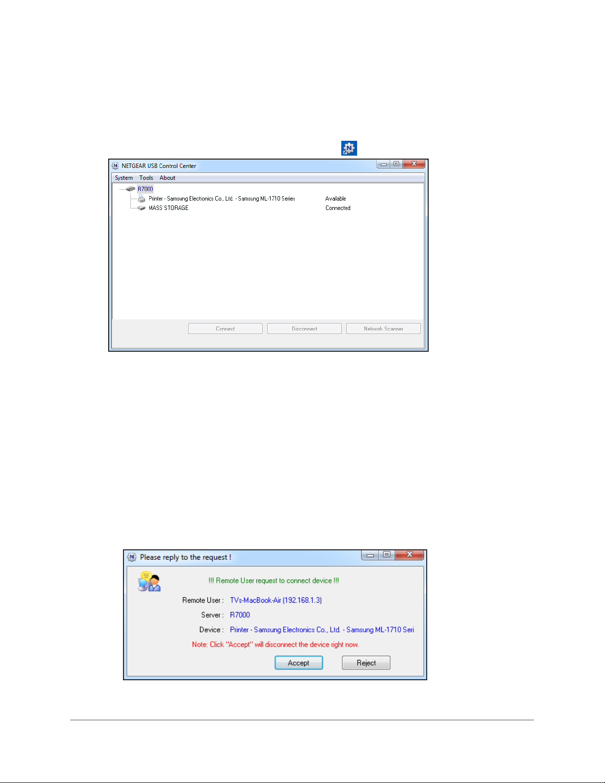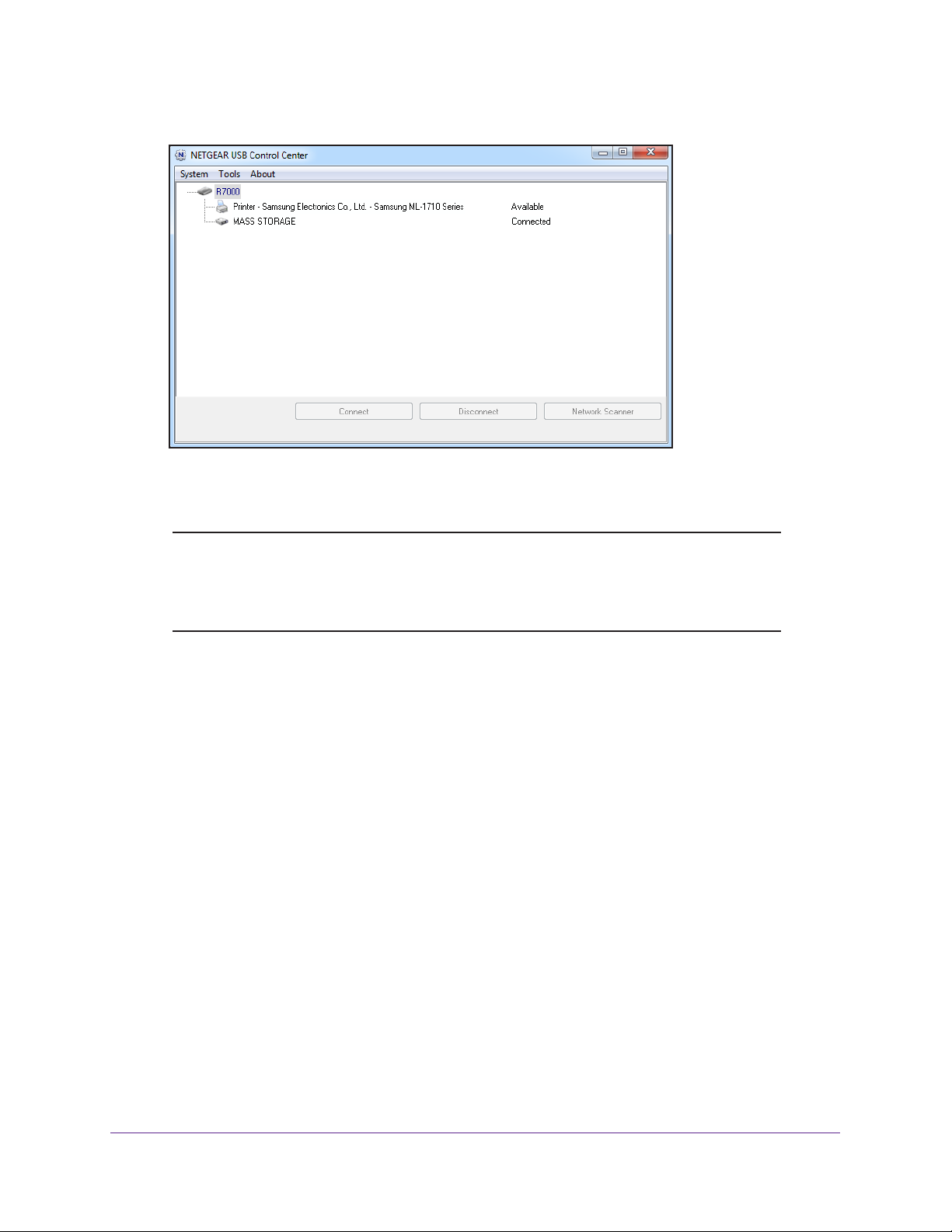The NETGEAR USB Control Center automatically connects your computer to the USB