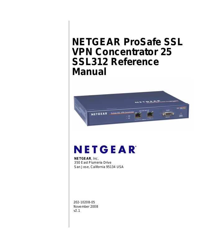 The NETGEAR® Prosafe™ SSL VPN Concentrator 25 SSL312 Reference Manual describes how