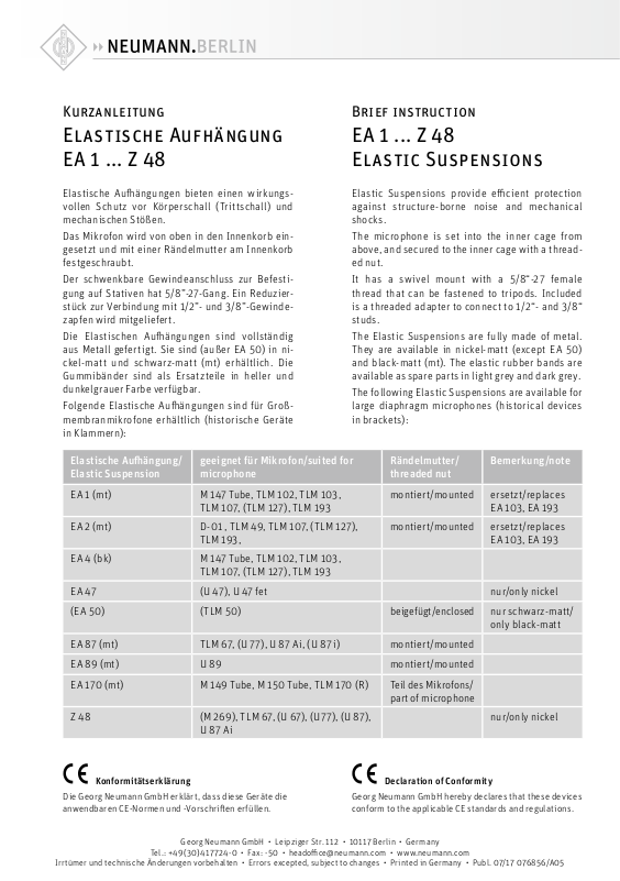 NEUMANN EA 170 mt, EA 2 mt, EA 87-MT, EA 2, EA 1 NEUMANN EA 170.pdf