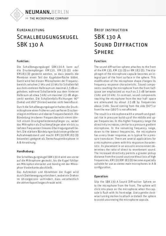 of the KM 130, KM 131 (D) or KM 183 (D). The diaphragm of the microphone capsule becomes an integral part of the front surface in the sphere. This