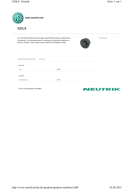 NEUTRIK Datasheet
