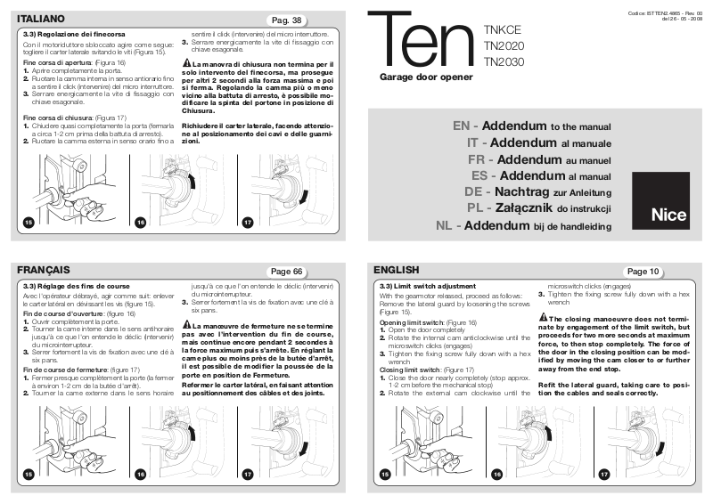 dalej w stosunku do zablokowania końcowego jest możliwe wykonanie modyfikacji uderzenia bramy w położeniu Zamknięcia.