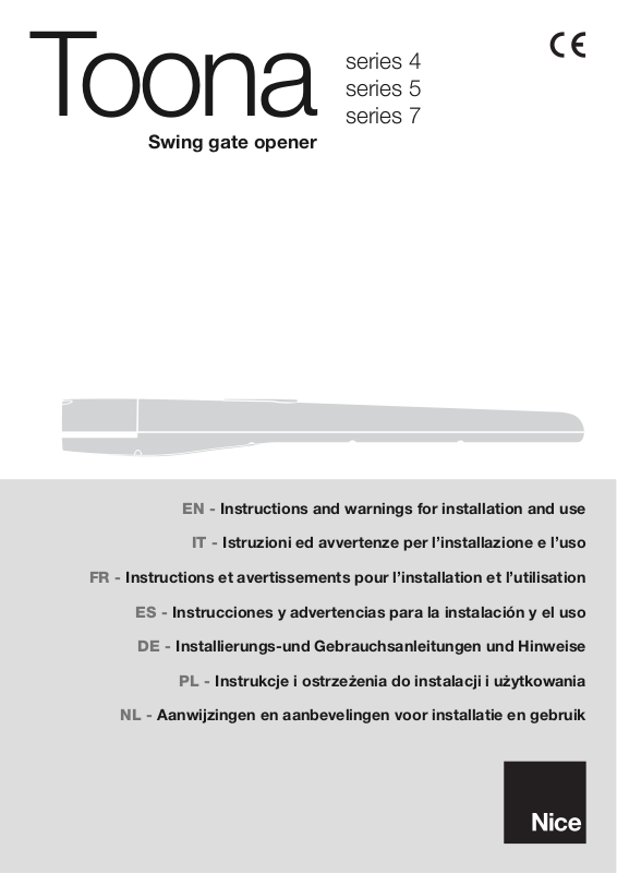 Handbuchs aufmerksam durchzulesen. In Zweifelsfällen die Installation unterbrechen und vom Nice-Kundendienst Klärungen verlangen.