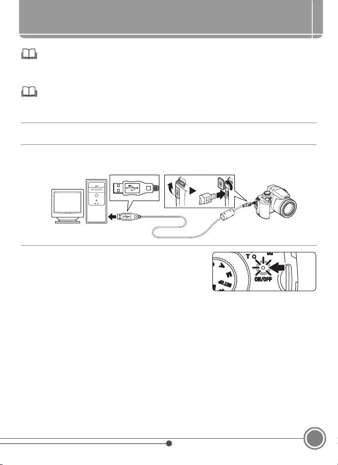 カメラと起動済みのパソコンを、USB ケーブルで下図のように接続する