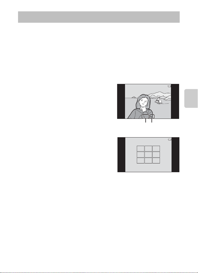 fokusavimo srities vietą arba pasirinktą scenos režimą, AF