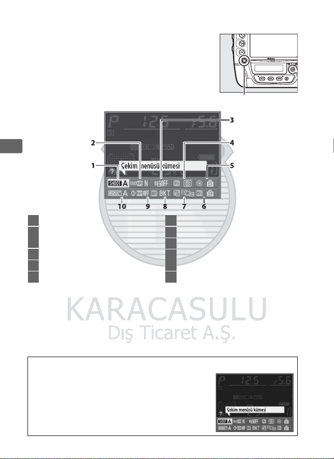Fotoğraf makinesinin ekranında görüntülenen menü öğeleri, seçenekler