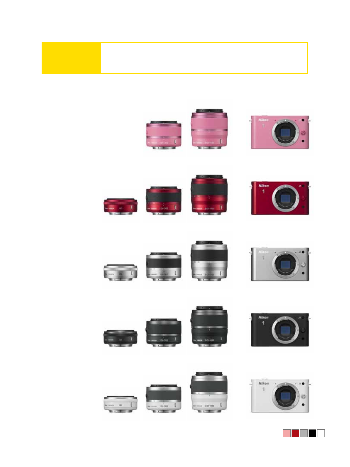 1 全世界最短的拍攝時滯(由尼康效能試驗測定)。測定時使用的是單點AF 模式及標準變焦鏡頭( 1 尼克爾 V R 1 0-30 mm )的最短焦距。截至 2 011 年 8 月 5 日。
