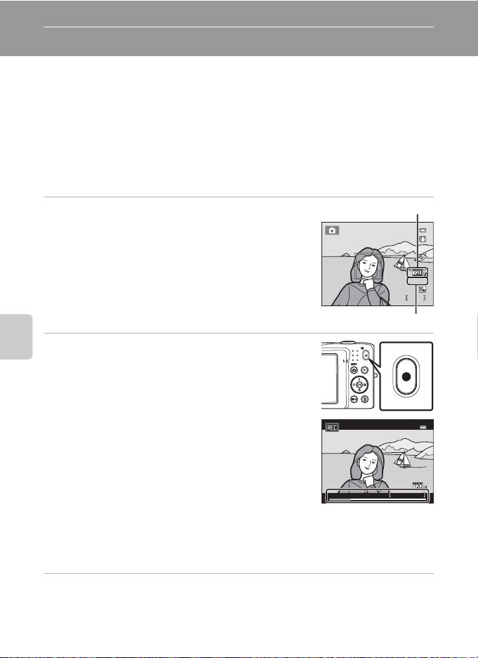 • Der Selbstauslöser (A55) kann verwendet werden. Wenn b Taste (e Filmaufzeichnung) nach