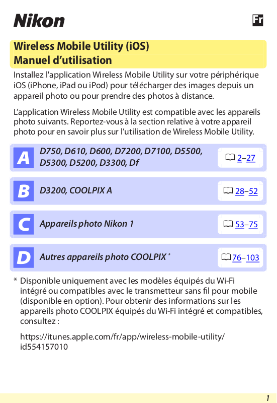 Le SSID par défaut commence par « Nikon ». Les périphériques