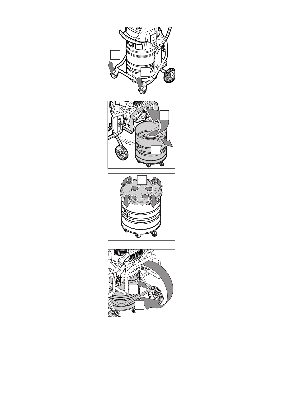 Vóór het transport alle vergrendelingen van het vuilreservoir slui-