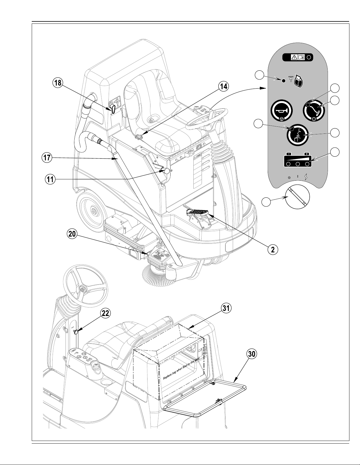 NOT: Makine, Yan Süpürge kalkık konumda iken saklanmalıdır. Yan Süpürge, kıllar çok aşınmış olduğunda veya etkin olmadığında değiştirilmelidir.