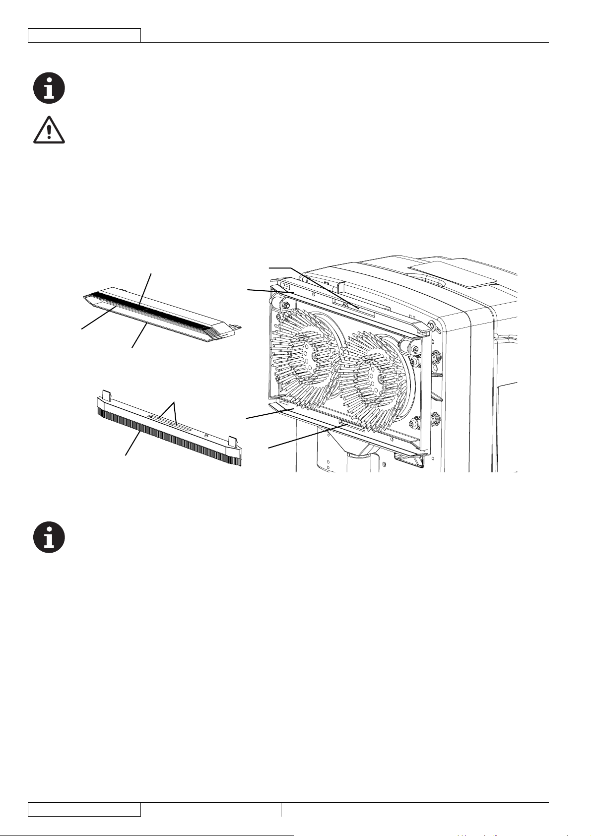 Spoel en reinig het aanzuigrooster (B) met zorg.