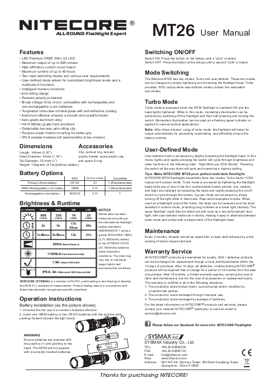 For the latest information on NITECORE® products and services, please