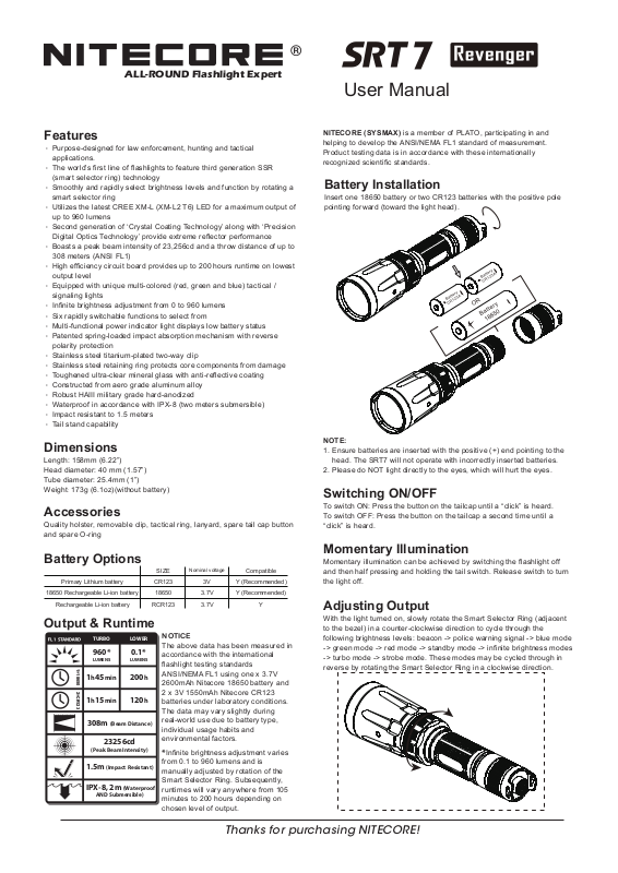 Thanks for purchasing NITECORE!