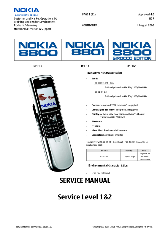 NOKIA products. This Service Manual is to be used only by authorized NOKIA service suppliers, and the content of it