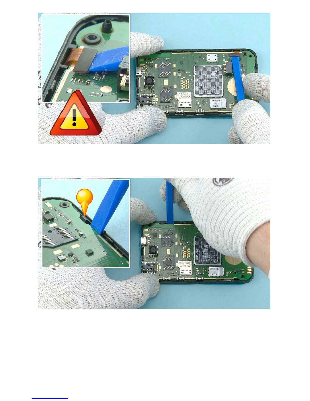 10) Push from the shown place with the sharp end of the SS-93 to release the MAIN ANTENNA.