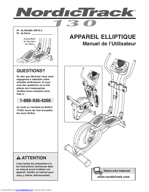 • le NOM DE L’APPAREIL (l’appareil elliptique NordicTrack 130)