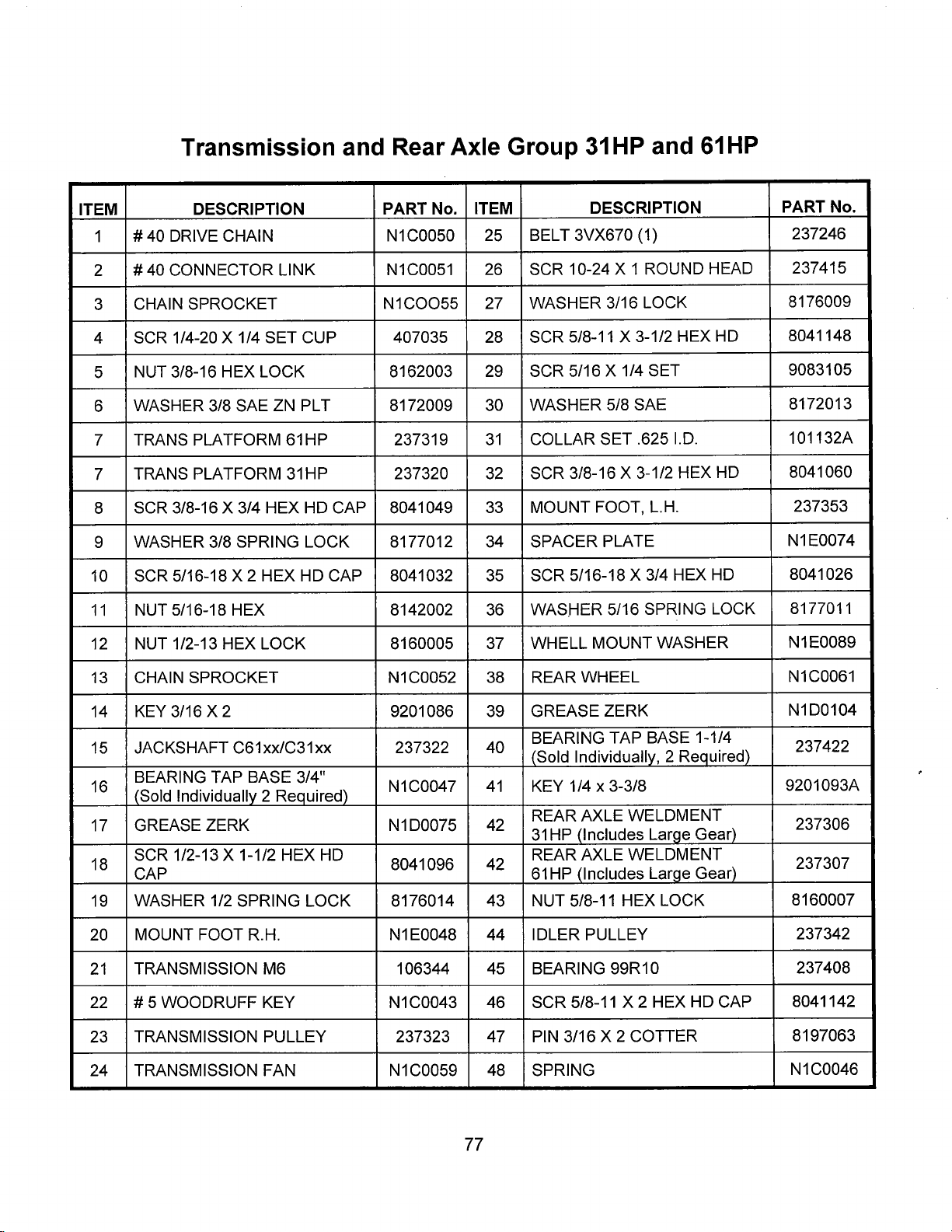 NOTE: All Parts Are Sold As Individual (each) Unless Noted Otherwise