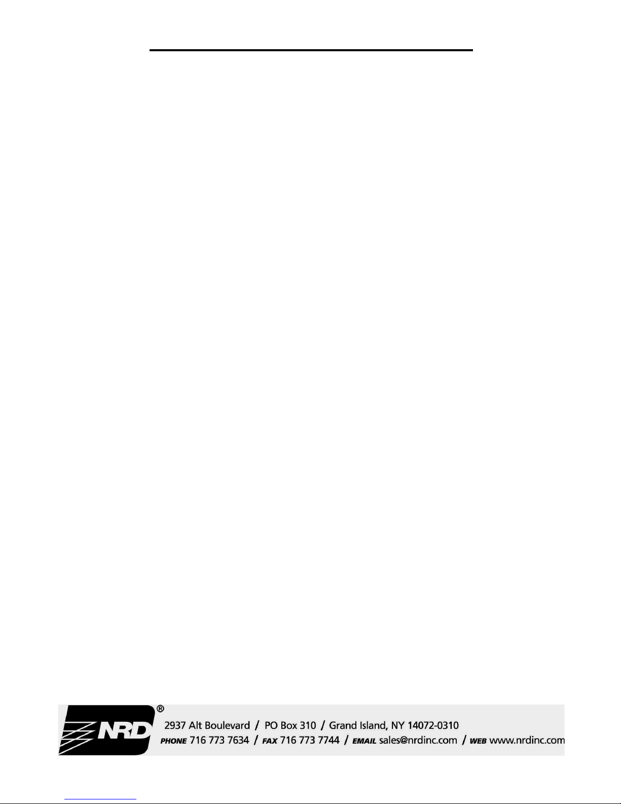 under warranty should be shipped prepaid to the NRD factory. Call Customer Service at (716) 773-7634 for a Return