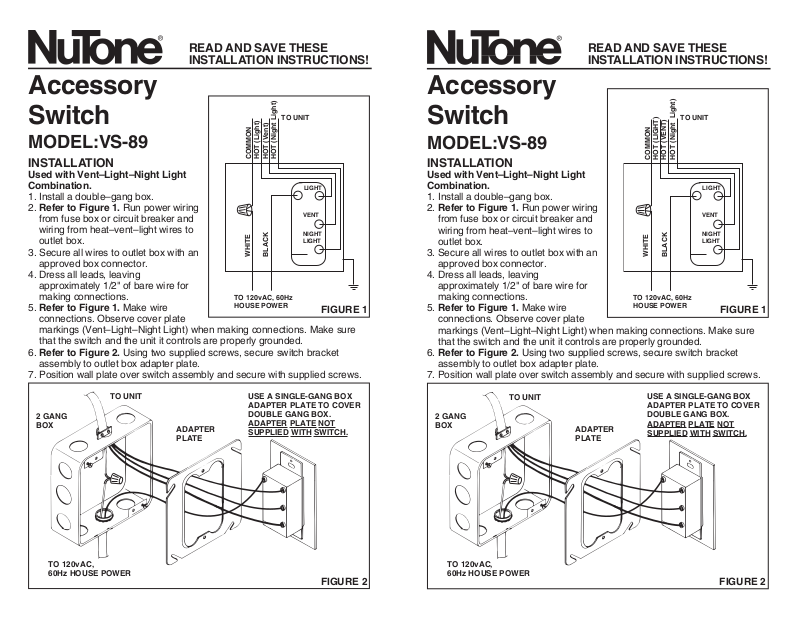Residents of Alaska or Hawaii should write to: NuTone Inc. Attn: Department of National Field