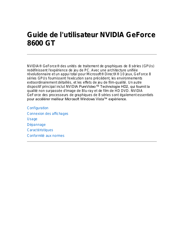 GeForce des processeurs de graphiques de 8 séries sont également essentiels