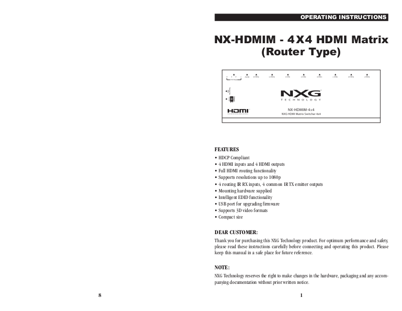 Thank you for purchasing this NXG Technology product. For optimum performance and safety,