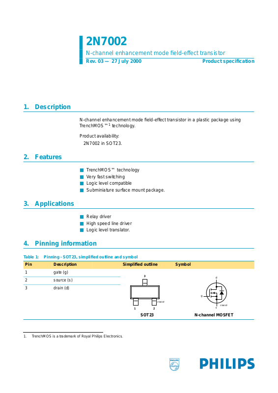 1.TrenchMOS is a trademark of Royal Philips Electronics.