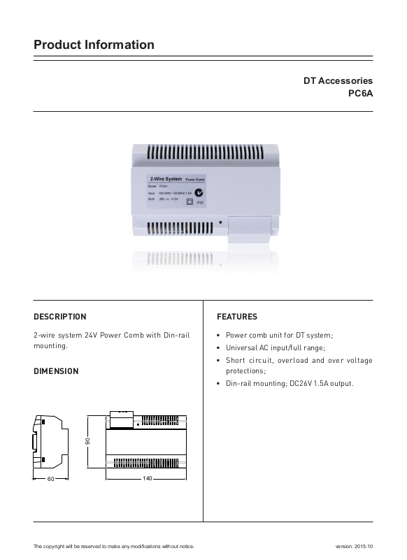The copyright will be reserved to make any modications without notice.The copyright will be reserved to make any modications without notice. version: 2015.10
