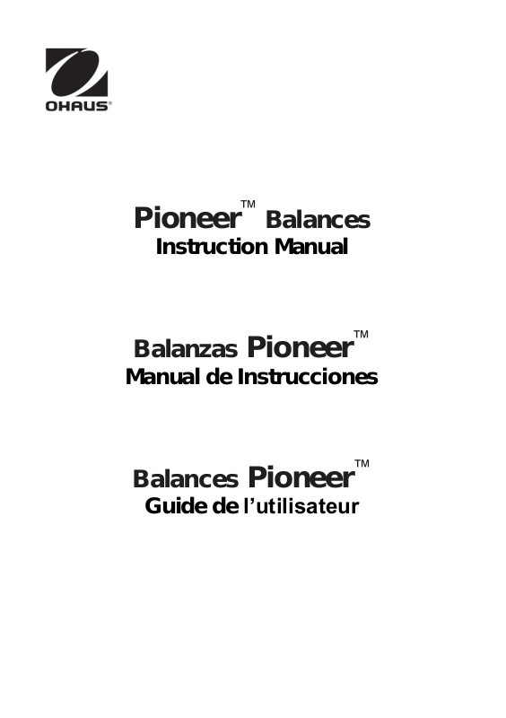 Ohaus ou votre repré sentant local agré é Ohaus pour de plus amples informations.