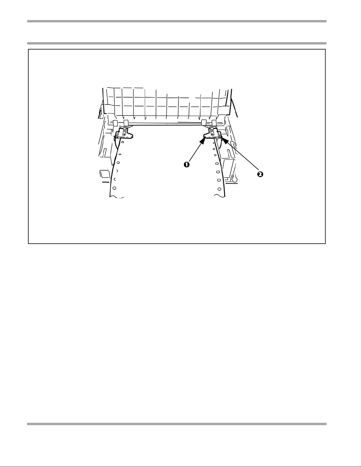 2. Swing over the wire paper feed guide (2) to rest on roller assembly.