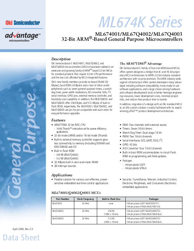 Oki Semiconductor’s ML674001, ML67Q4002, and