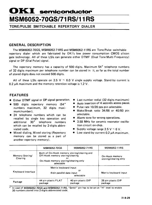 OKI MSM6052-70GS, MSM6052-71RS, MSM6052-11RS User Manual