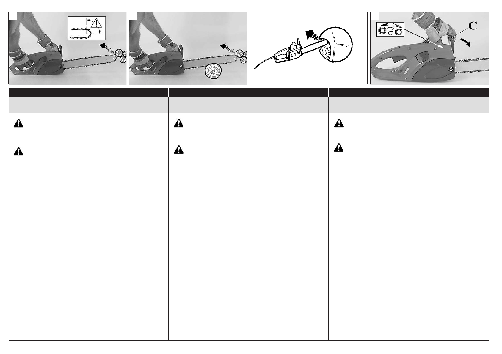 Para um emprego correto da electrosserra e para evitar acidentes, não iniciar o