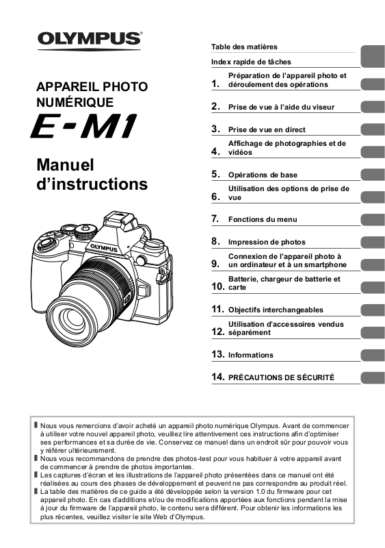 La table des matières de ce guide a été développée selon la version 1.0 du firmware pour cet