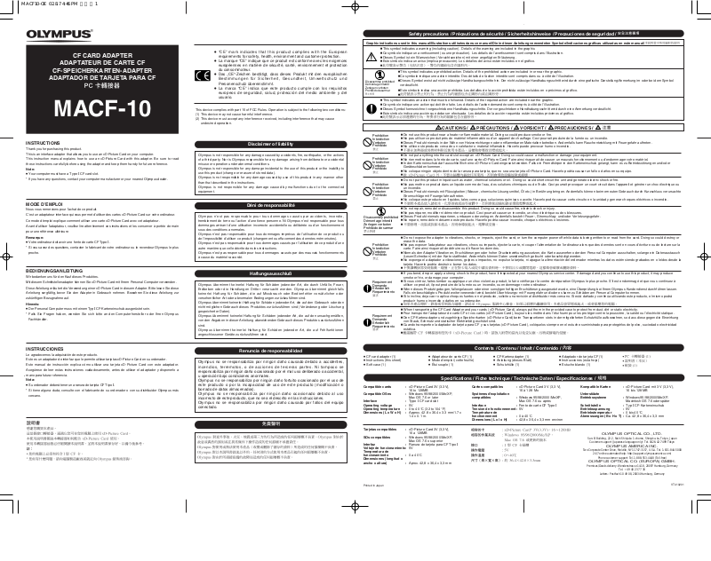 Pour utiliser l’adaptateur de carte CF MACF-10, PC Exchange ou File Exchange doit être installé et mis en marche pour monter des supports formatés DOS. Pour plus de détails, se référer au mode d’emploi de