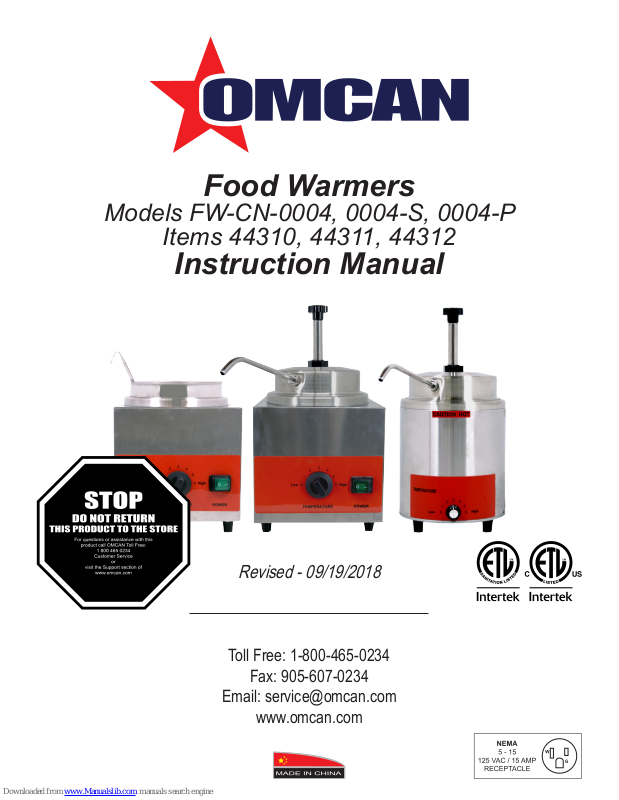 Omcan would like to thank you for purchasing this machine. It’s of the utmost importance to save