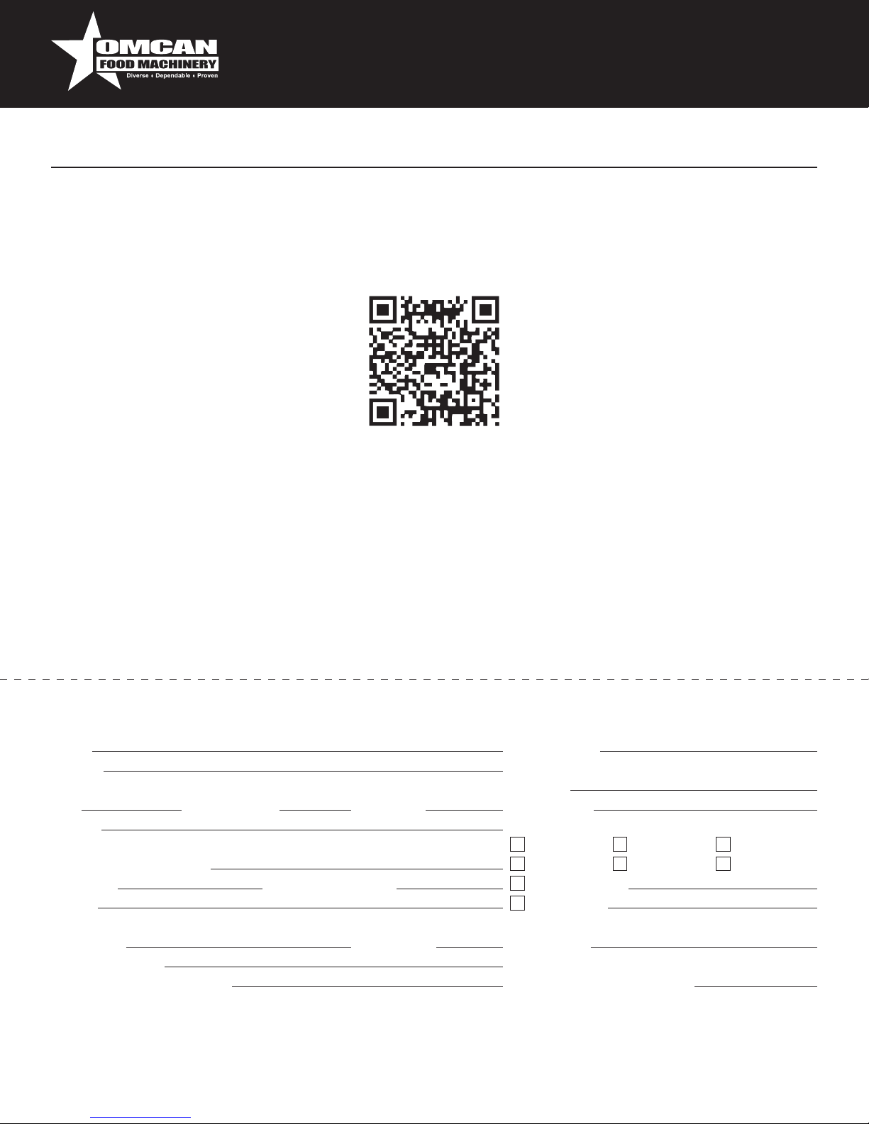 Thank you for purchasing an Omcan product. To register your warranty for this product, complete the information below, tear off the card at