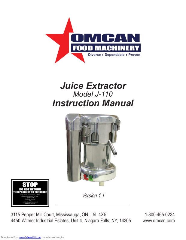 a Return Authorization Number before returning the juicer, postage-paid and insured, to Omcan Inc. Upon