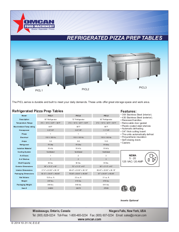 Tel: (905) 828-0234 Toll-Free: 1-800-465-0234 Fax: (905) 607-0234 Email: sales@omcan.com