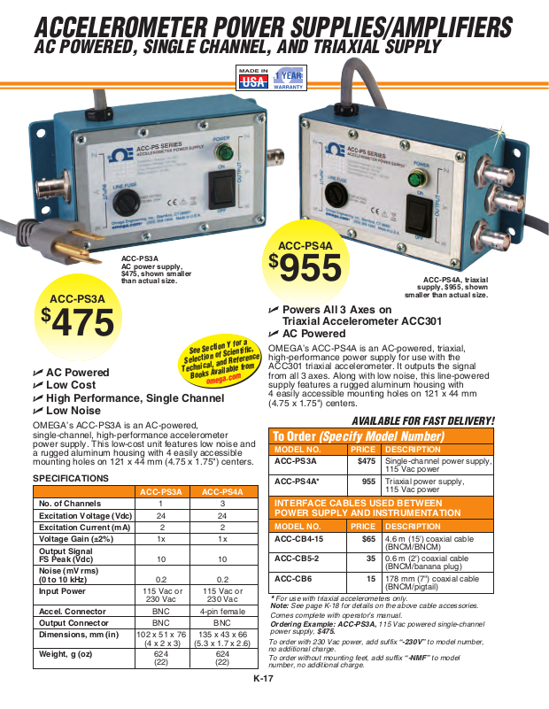 OMEGA’s ACC-PS4A is an AC-powered, triaxial,