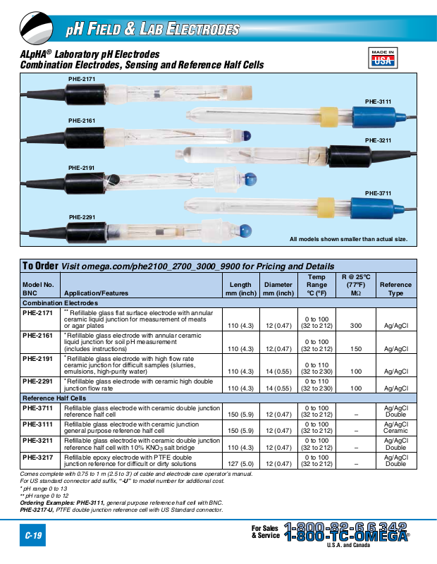 To Order Visit omega.com/phe2100_2700_3000_9900 for Pricing and Details