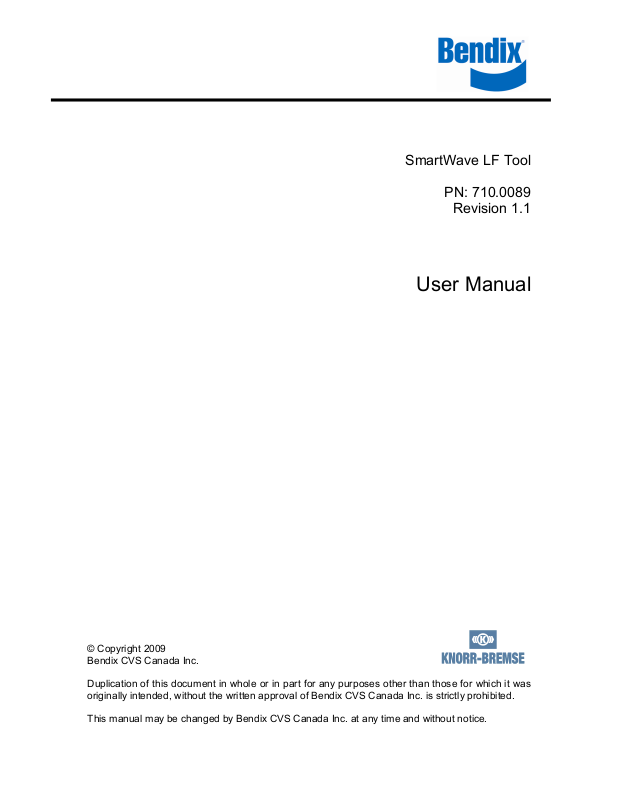 This manual may be changed by Bendix CVS Canada Inc. at any time and without notice.
