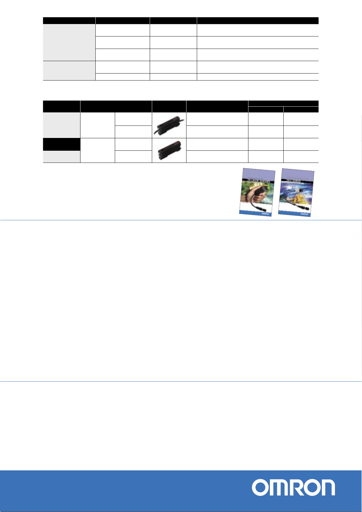 E3X-DA-S- ja E3X-MDA-kuituoptiikkasarjojen antureita.